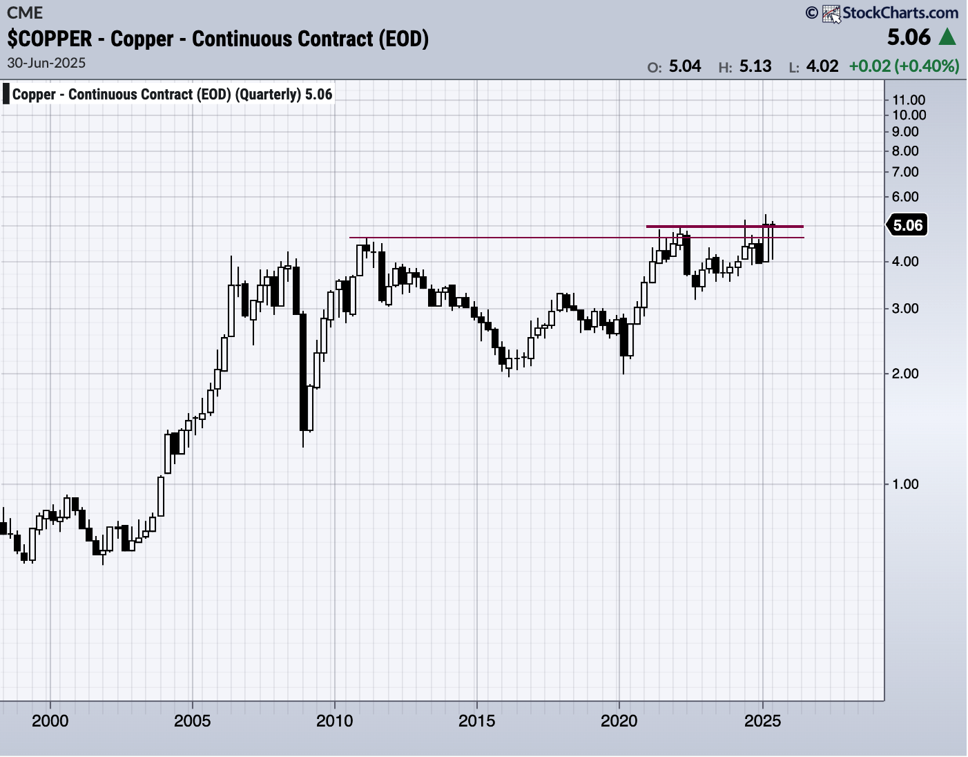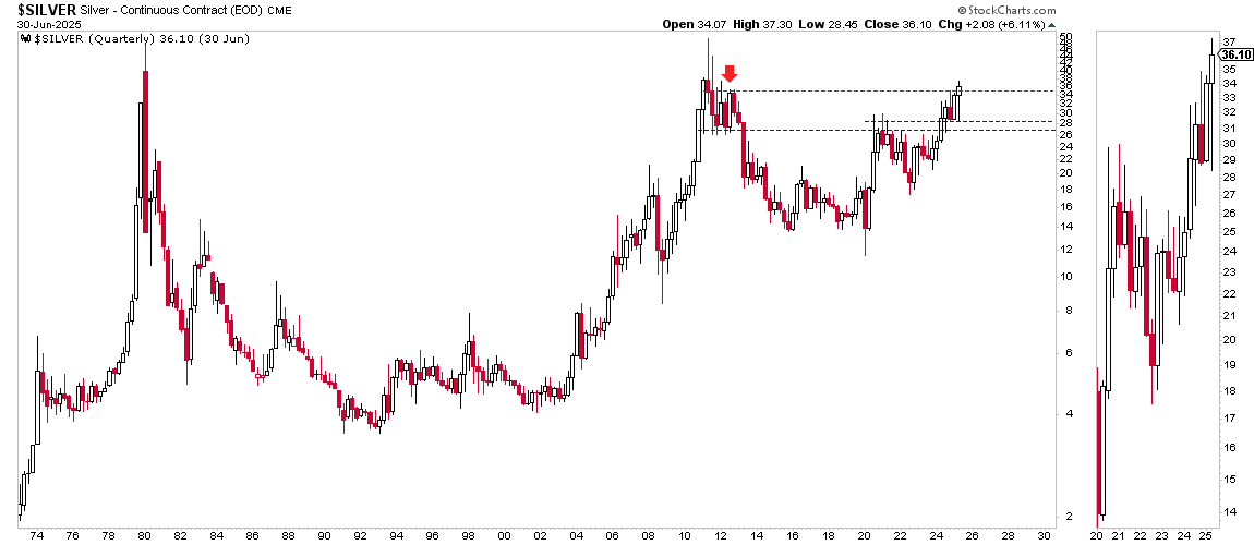 Gold has been consolidating bullishly for two months but that did not dent the quarterly chart.