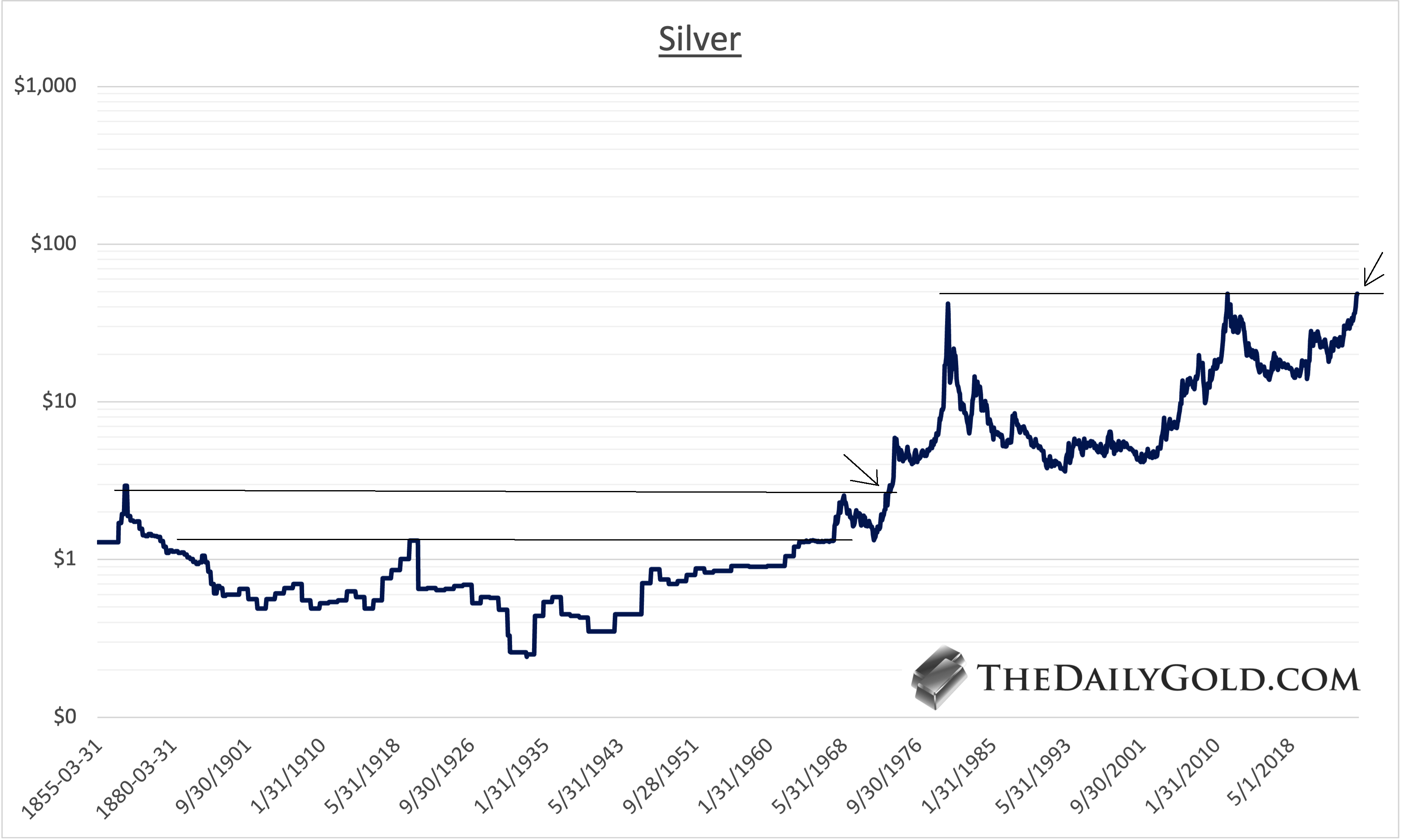 Silver broke the Civil War peak and 1968 peak (around $3/oz) in 1973.