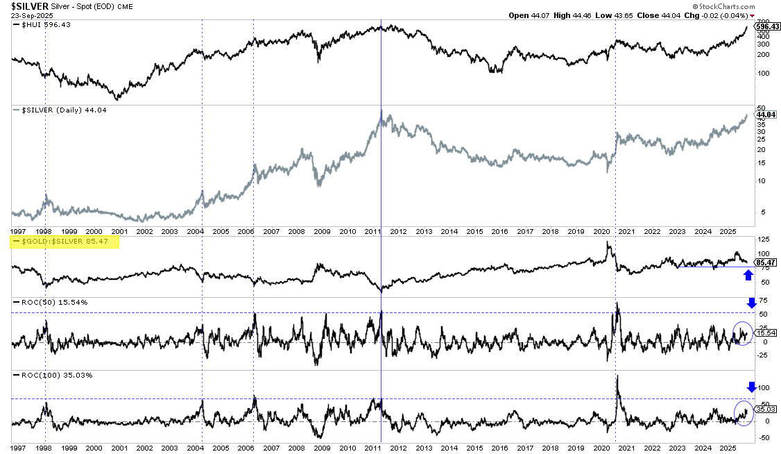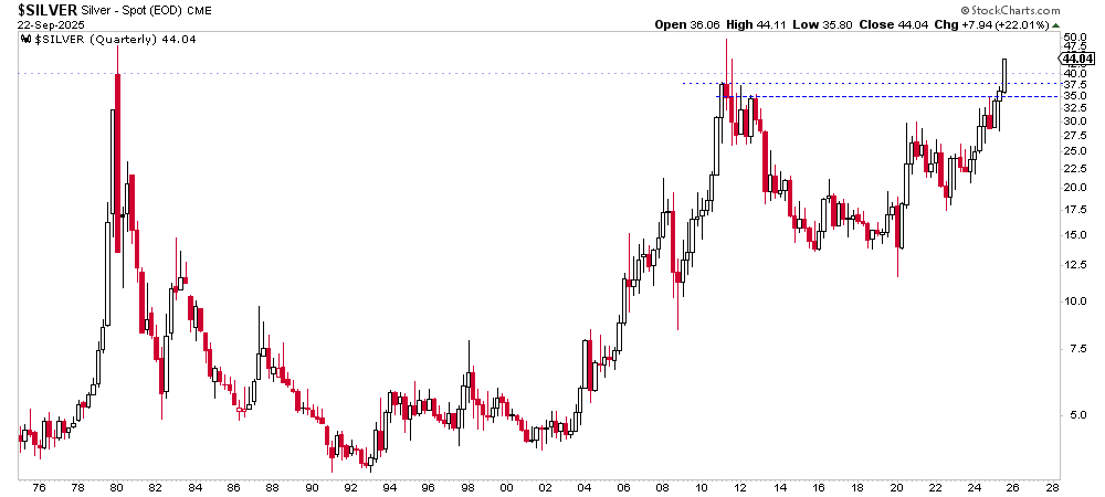 It’s buy, hold and trim for the bull market. Now it’s hold or trim. Because we own higher-quality companies that are not as extended, holding makes sense. But the question is stock specific. Lower-quality juniors that have rhino horn charts and are up +300% need to be trimmed. If we get a mini-blowoff to $50 and $4000, I will trim into